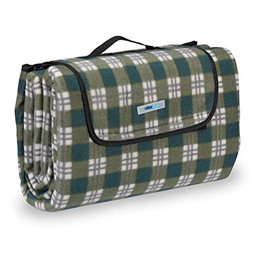 Relaxdays XXL picknickfilt, 200 x 200 cm, mjuk fleece strandfilt, värmeisolerad, vattentät, med bärhandtag, färgglad