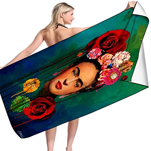 BAAROO Kahlo Barns strandhandduk, Målare Frida badhandduk, ultraabsorberande strandfilt, pool, resor, simning, bastuhandduk för kvinnor 130 cm x 80 cm