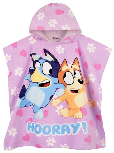 Bluey Poncho | Barnponcho Handduk | Flickor Strandhandduk Bomull | Handduk Med Hätta | Badponcho Barn | One Size | Lila