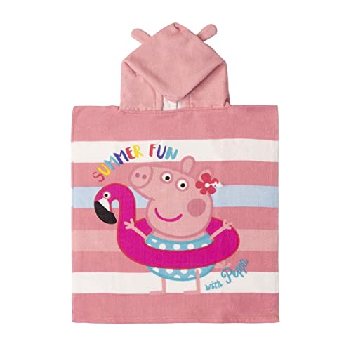 CERDÁ LIFE'S LITTLE MOMENTS - Strandhandduk poncho för barn med huva och huvudfigur med tryck från Peppa Putz | Officiell licens från Hasbro, 2200009375_, rosa