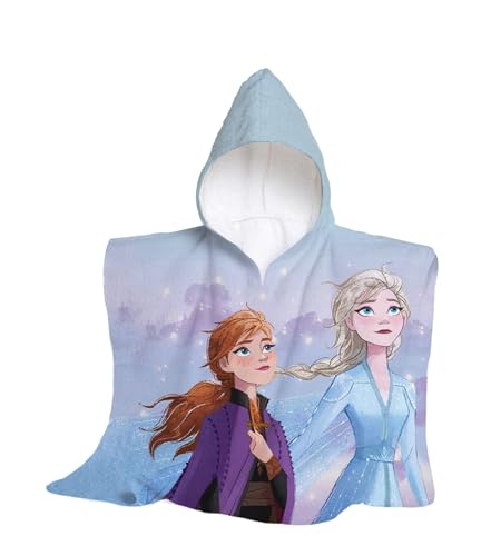 hermet, Disney Frozen strandhandduk med huva, maximal strandponcho, för barn, 60 x 60 cm, strandhandduk eller pool, 100% mjuk bomull