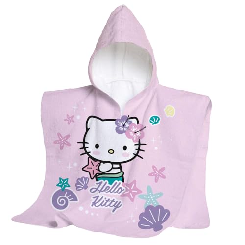 hermet, Hello Kitty Strandhandduk med huva, maximal strandponcho för barn, 60 x 60 cm, strand- eller poolhandduk, 100% mjuk bomull