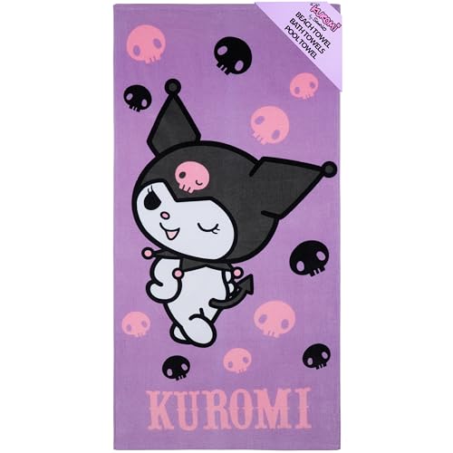 Hello Kitty Sanrio handduk för barn tonåringar kvinnor mjuk absorberande bad dusch simning strandhandduk snabbtorkande Kuromi Kawaii anime semester nödvändigheter 140 x 70 cm (lila, 70 x 140 cm)