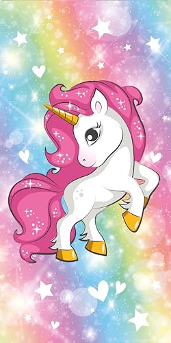 TAMEOLIE Enhörningshandduk 70 x 140 cm barn flickor 100 % bomull, badhandduk, strandhandduk, enhörning, mjuk, snabbtorkande, mjuk, häst