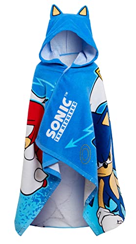 Sonic The Hedgehog barn handduk med huva 100 % bomull absorberande handduk barn poncho strandhandduk badhandduk barn simning wrap snabbtorkande, blå