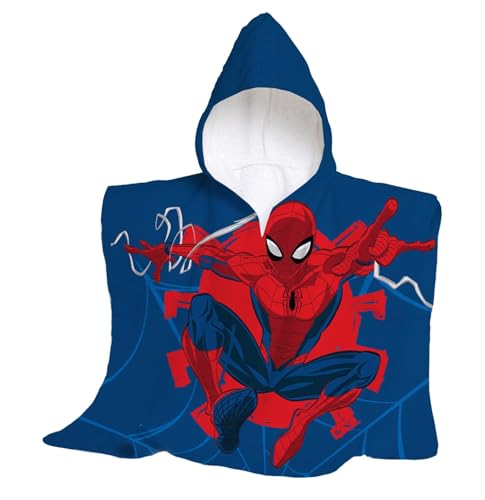 hermet, Disney Spiderman strandhandduk med huva, maximal strandponcho, för barn, 60 x 60 cm, strandhandduk eller pool, 100% mjuk bomull