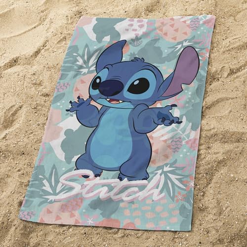 Disney Home Stitch Tropics bad- och strandhandduk för barn | 100% bomull | Oeko-TEX | 70 x 120 cm | blandat tryck | flerfärgad