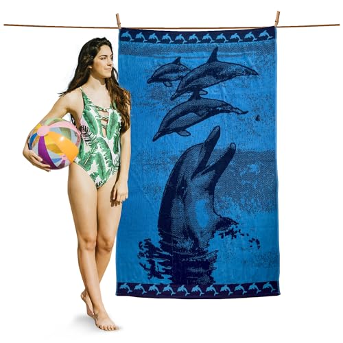 Ulticool Mikrofiberhandduk för barn 140 x 70 cm – delfin akvarium dino blå – lätt resehandduk snabbtorkande badhandduk strandhandduk mikrofiber – resa strand barn pojke