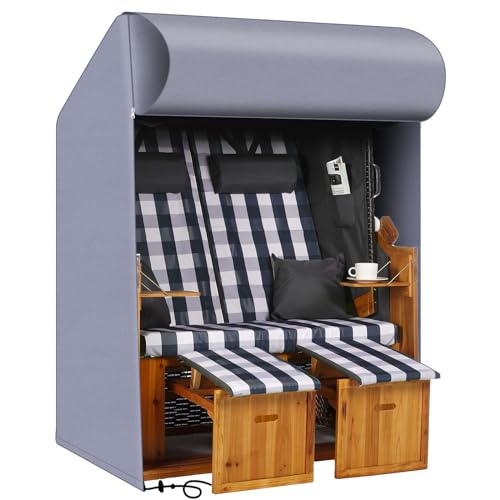 LAMUNI Strandkorg Skyddsfodral Vattentätt Överdrag för Strandkorg, 420D Oxfordtyg Strandkorgskydd med Ventilationsöppningar, Väderbeständig Skydd för Strandkorgar, 155x95x165/145cm