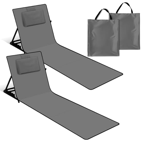 Yakimz Vikbara strandstolar 2 x, bärbar strandmatta med justerbar höjd i 5 nivåer, vikbar strandmatta, ryggstöd och platsbesparande vikbar, för strand, camping, ljusgrå, (8858)