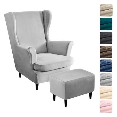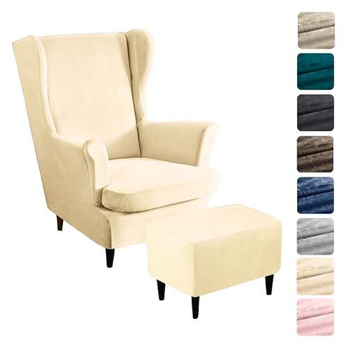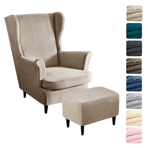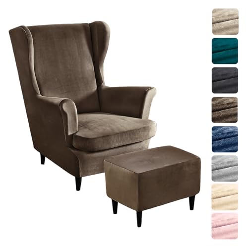 Alishomtll 3-delad överdrag för öronlappsfåtölj med ottomanskyddsöverdrag, stretch, sammet, fåtöljöverkast, elastiskt, enfärgat fåtöljskydd, Strandmon, Tiger, stolsöverdrag med armstöd, högt ryggstöd