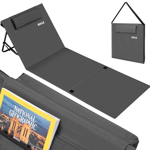 BAKAJI Strandsäng Matta Hopfällbar Strandhandduk Vattentät Justerbar 5 Positioner Vadderad Med Väska Med Ryggstöd Camping Sandtät (Grå)