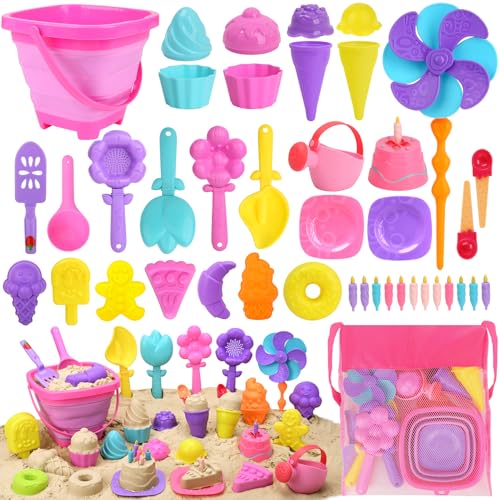 Joyreal 49 st Glass strandleksaker - Sandgropleksaker med hopfällbar hink och spade Strandset Barn med spade Verktygssatser Förvaringsnätväska för småbarn Pojkar Flickor