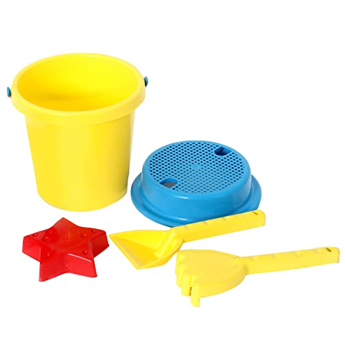 ColorBaby Color Beach krabba strandset med hink 14 cm, spadar, kratta, glassformar, transportnät med handtag ingår, optimalt för lek sand från 18 månader (47701)