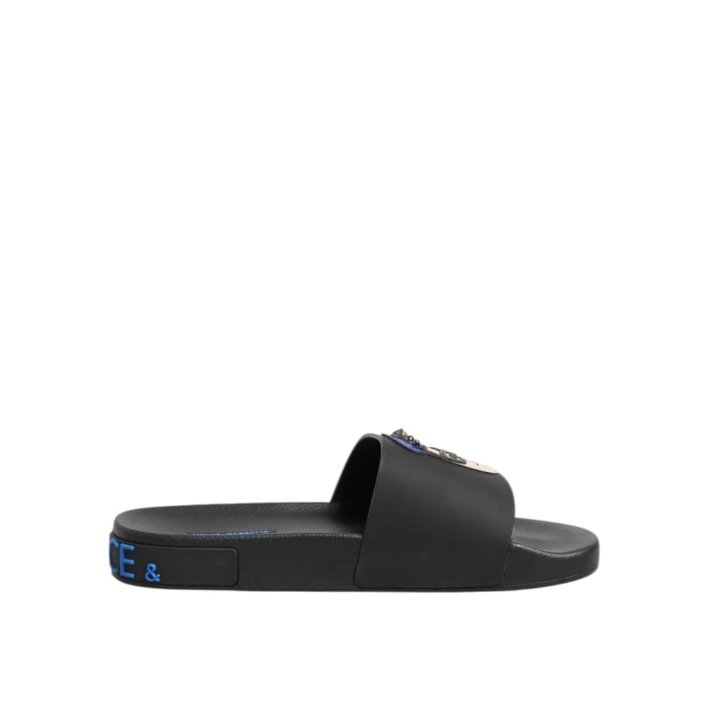 Dolce & Gabbana, Skor , Herr, 40 EU, Läder, Svarta Läder Slides Strandskor