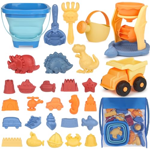 YIMORE Strandleksaker för barn, 30 stycken strandspel med hink strand vikbar lastbil, leksaksväska strand, present till pojke flicka 2 3 4 5 år