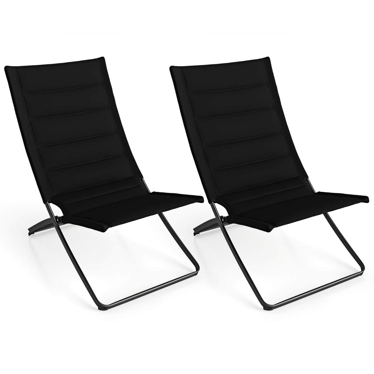 Hopfällbara strandstolar, set om 2 – Vadderade, Bärbara, Svarta