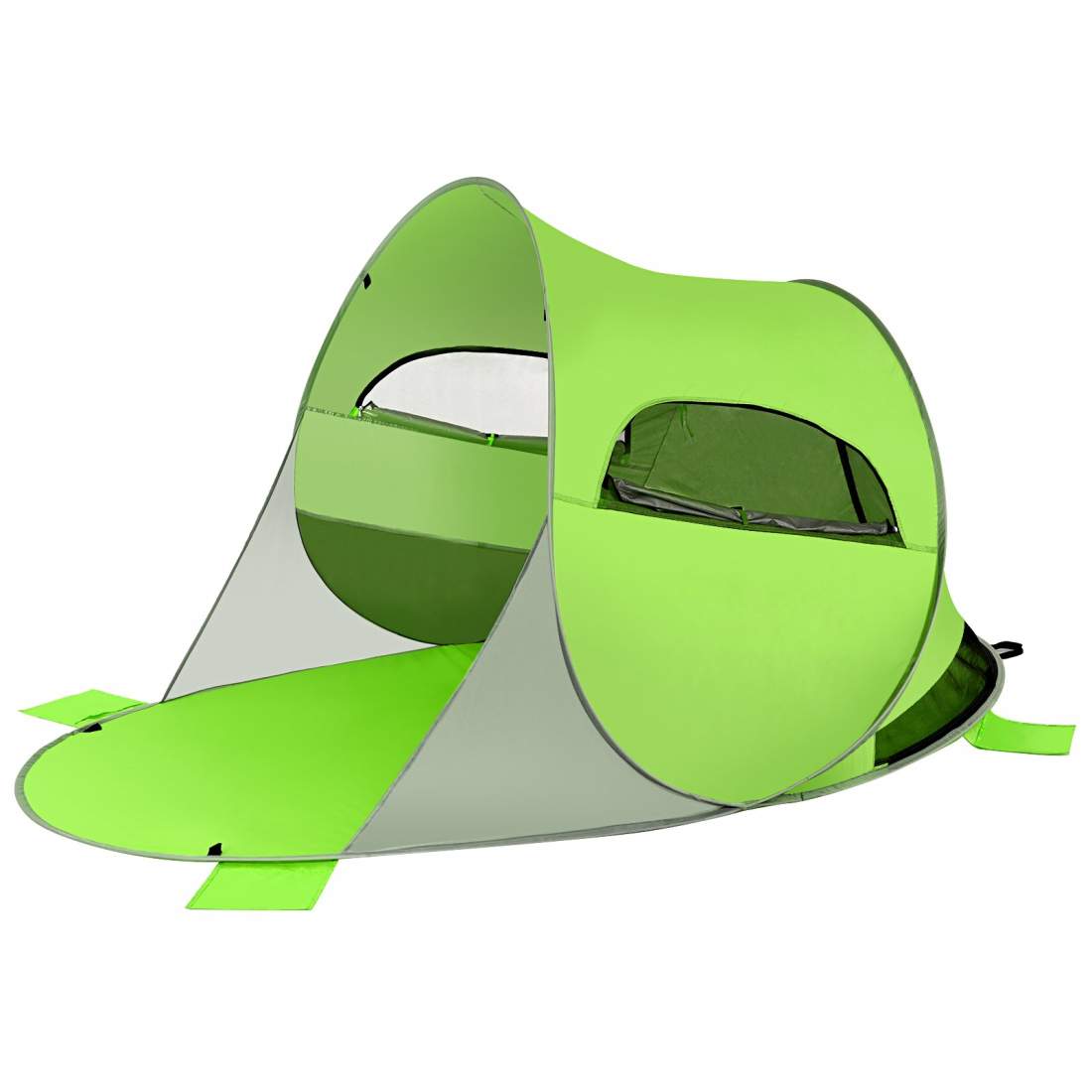 Stort pop up strandtält, hopfällbart strandskydd, 3-4 personers strandtält, solskydd, kasttält, grönt