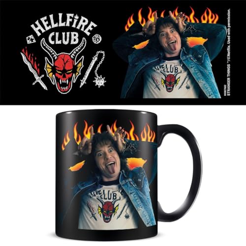 Pyramid International Stranger Things mugg (Eddie Hellfire Design) 325 ml keramisk svart mugg, kaffemugg och främlingar saker gåvor – Officiell främling saker varor