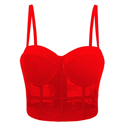 Woboren Dam korsett bustier magtröja bröllopsfest strass diamant push-up BH smal väst, Röd, XS