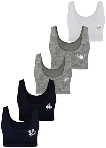 LOREZA ® 5 flickor bustier av bomull med strass spagettiremmar bh, sport bh, storlek 140–170, M-223 – 5 mix, 140-146