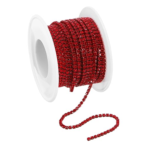 QUARKZMAN 10 yard kristall strass kedja 2,0 mm sy upp stäng klo kedja trimning för pyssel smycken kläder väskor sko dekoration röd 1 rulle