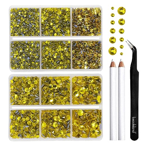 Beadsland SS6-SS30 Hotfix-strass, 6 080 st. citrongula strasstenar för kläder och hantverk, kit med 6 blandade storlekar, vaxpenna och pincett, citrin