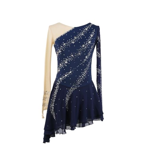 ZDXrZ Konståkningsklänning, professionell konståkning tävling glänsande strass trikåer kläder för flickor kvinnor, BLÅ, XXL