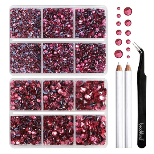 Beadsland SS6-SS30 Hotfix-strass, 6 080 st. chockrosa strasstenar för kläder och hantverk, kit med 6 blandade storlekar, vaxpenna och pincett, fuchsialila