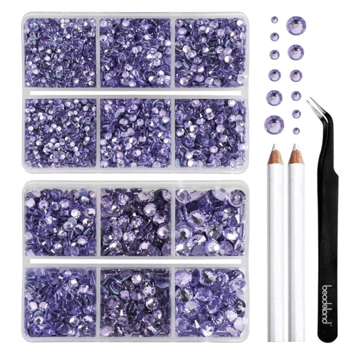 Beadsland SS6-SS30 Hotfix-strass, 6 080 st. lila strasstenar för kläder och hantverk, kit med 6 blandade storlekar, vaxpenna och pincett, lila