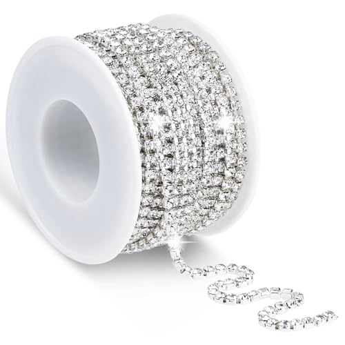 10 Meter 3 Mm Strass Trim Kristall Kedja Band Rulle för Sömnad, Hantverk, Smyckestillverkning, Bröllopstårta, Bukett, Kläder, Gör-Det-Själv Dekoration (Vit Med Silverbas)