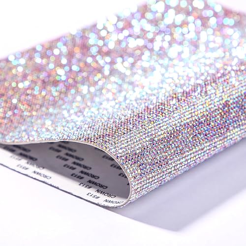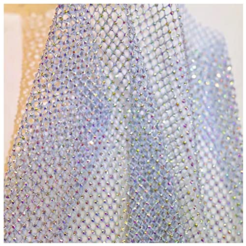 SHTGOI Strass-nättyg 100 x 120 cm, stretchigt strassnät med AB-färg, strass, skärbart nät för skohätta, kläder, strass, nät, himmelsblå