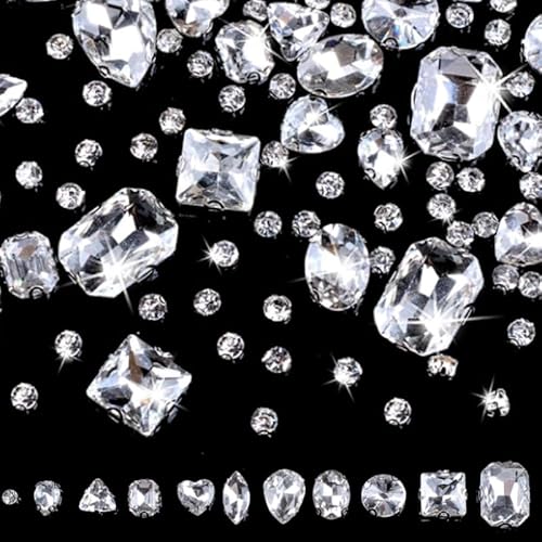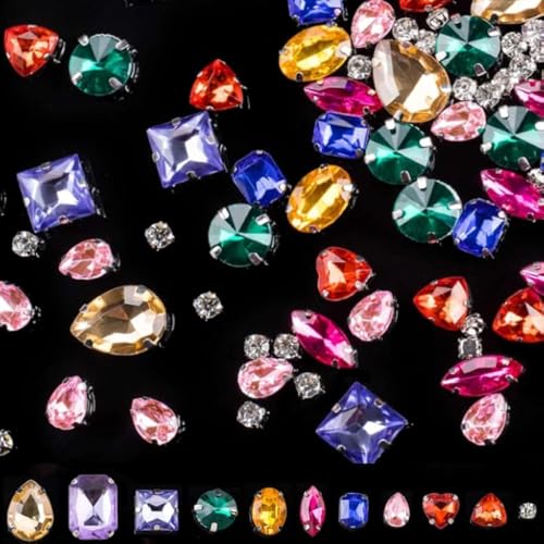 156 delar genomskinlig sy på glas strass metallspets infattning platt baksida strass sömnad klo kristaller strass blandade former för hantverk, kläder, kläder, kläder, skor, klänning, bälte, smyckestillverkning