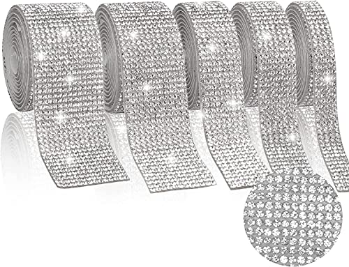 5 rullar kristallstrassband strass band rulle harts diamantband strass klistermärke ark självhäftande strass ark strass remsor för skor kläder dekoration gör-det-själv hantverk silver