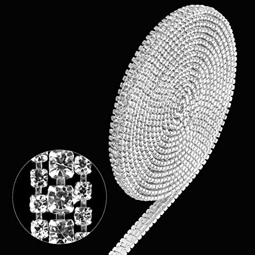 Prasacco 3 Meter 3 Rader Strass Kant, Kristall Kedja Band Rulle Remsor för Hantverk Smycken Gör-Det-Själv Kläder Dekorationer