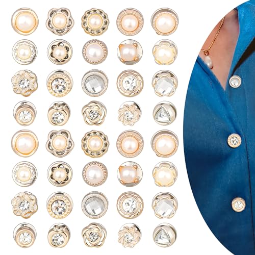 40 st broschnålar för kvinnor mode ingen sömnad knappnål pärla strass brosch nålar dekorativa säkerhetsnålar för kläder hatt väskor gör-det-själv hantverk, Metall