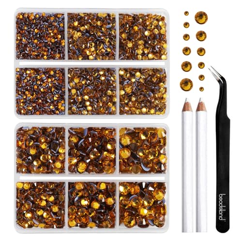 Beadsland SS6-SS30 Hotfix-strass, 6 080 st. strasstenar i topas för kläder och hantverk, kit med 6 blandade storlekar, vaxpenna och pincett, topas
