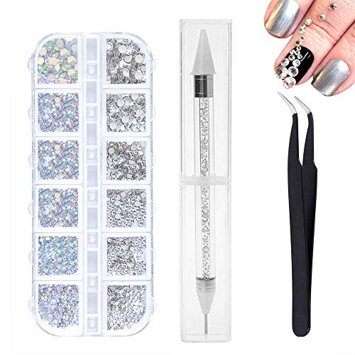 1440 stycken 6 storlekar kristall strass nagelkonst strass med plockup pincett och strass picker prickig pencett för nagellack, kläder, gör-det-själv-hantverk