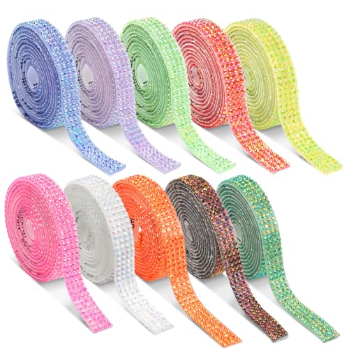 10 Rullar Självhäftande Strassband, Glitter Kristall Diamant Bedazzling Strips Multi-Användning Bling Strass Tejp Klisterremsa Ideal DIY Konsthantverk Dekor för Kopp Telefon Dator