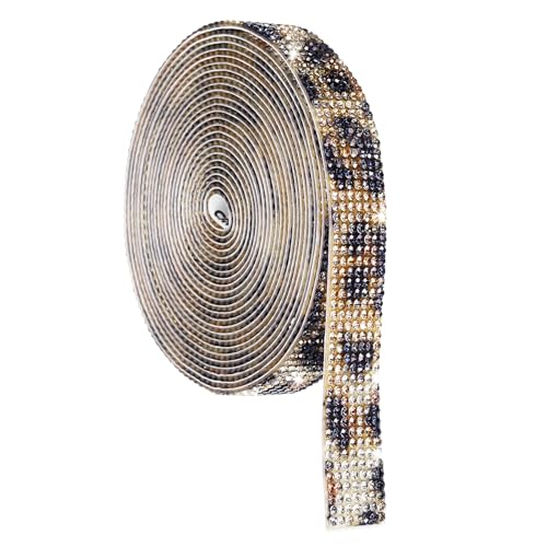 QUARKZMAN Självhäftande strassband, 4 meter kristall diamantband med 7 rader, strassklistermärken för konst och hantverk bröllop dekoration födelsedag leopard