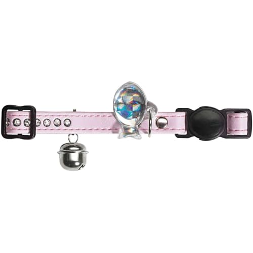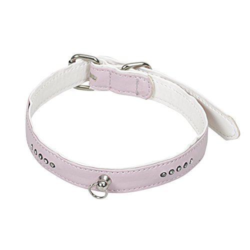 HUNTER MODERN ART LUXUS katthalsband av högklassigt konstläder med strasstenar, one-size, ROSA