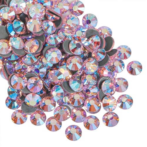 Beadsland Hotfix-strasstenar, 1 440 st., med platt baksida, kristallstrasstenar, för pyssel, kläder, dekoration, ljus rosa, SS16, 3,8–4,0 mm