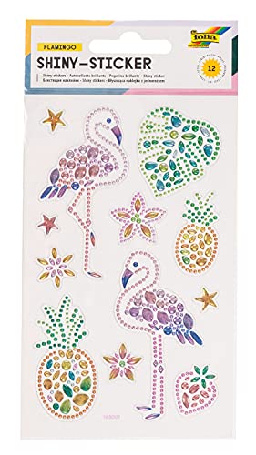 folia Skinande flamingo, 12 klistermärken, gjorda av färgglada strasstenar, i olika mönster, lätt att dra bort filmen, en storlek