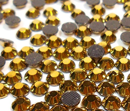 Strasstenar hotfix 3 mm flatback baksida strass SS10, 7 200 stycken, glasstenar, runda kristallädelstenar, 2,5 ~ 3 mm (guld)