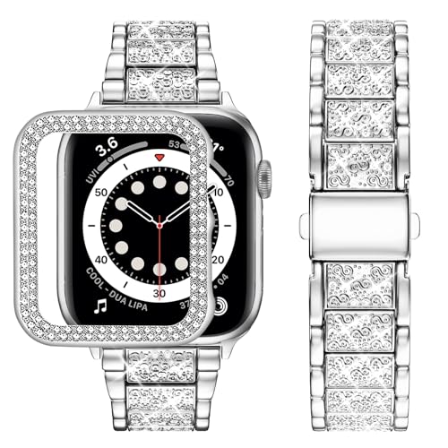 wutwuk Armband till Apple Watch 40 mm, med glittrande strasstenar, ersättningsremmar för Apple Watch Series SE 2/SE/6/5/4 – silver, 40 mm