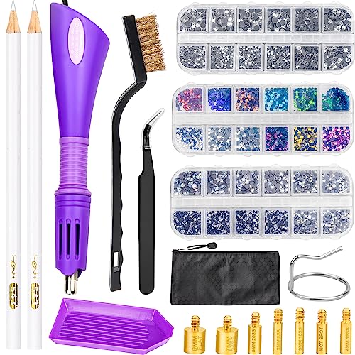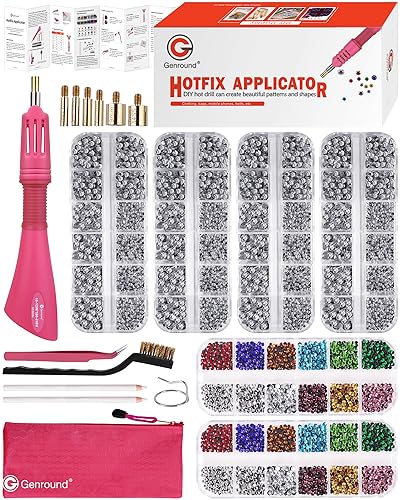Genround Hotfix-applikator med 8 280 stycken strasstenar, hot fix strass-applikator, verktygssats för tyghantverk