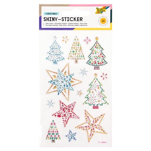 folia 18308 Shiny, Jul, 15 Klistermärke, av färgglada strasstenar, i olika motiv, dra bara av från folien, one Size