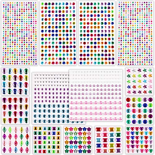 Självhäftande strasstenar, Vegena 1802 stycken glitterstenar, självhäftande smyckesstenar, akryl, färgglada, olika former, kristall, ädelstenar, dekorativa stenar för att klistra på, dekorera