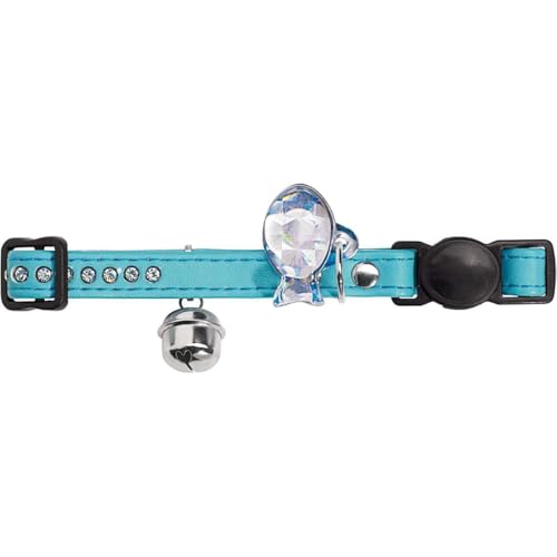 HUNTER MODERN ART LUXUS katthalsband av högklassigt konstläder med strasstenar, one-size, türkis