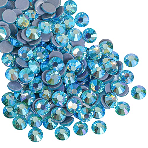 Beadsland Hotfix-strasstenar, 288 st., akvamarin Hotfix-strasstenar, värmefixerande strasstenar för pyssel, hotfix-kristall, runda ädelstenar, akvamarin (SS30/6,3–6,5 mm)